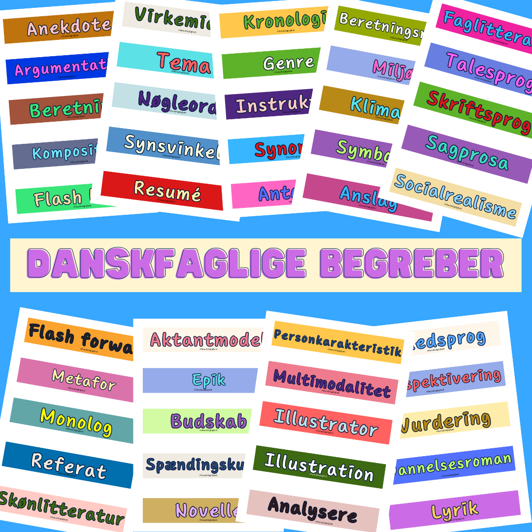 Ordene varierer meget i sværhedsgrad – men benyttes alle i danskfagets forunderlige faglige ordforråd.