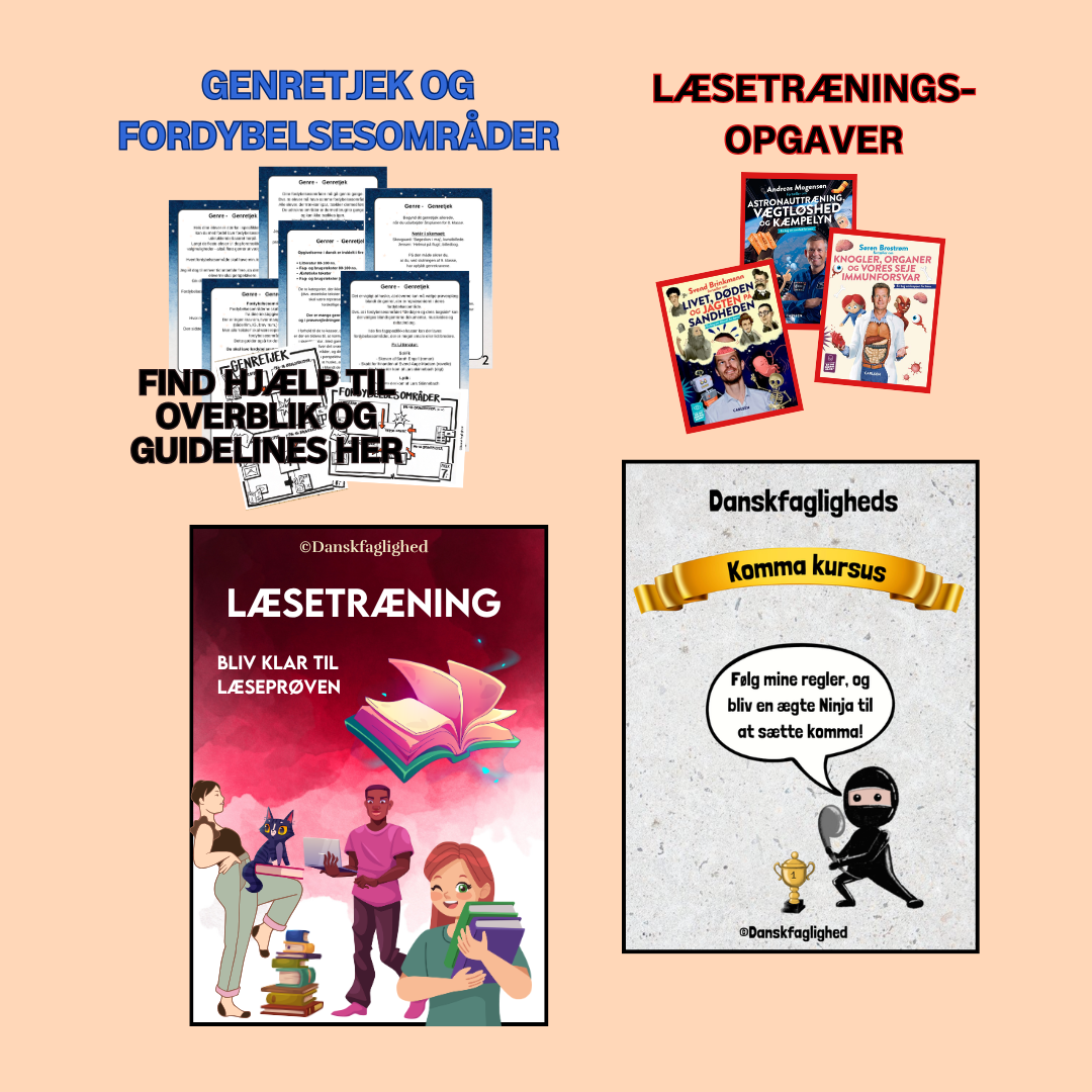 Denne eksamenspakke i dansk til udskolingen samler centrale elementer i eksamensforberedelsen. Med fokus på fordybelsesområder, læsetræning til læseprøven og kommakursus får eleverne en solid faglig base frem mod prøven i dansk. Materialet er udviklet til at kunne bruges direkte i undervisningen og kræver minimal forberedelse.