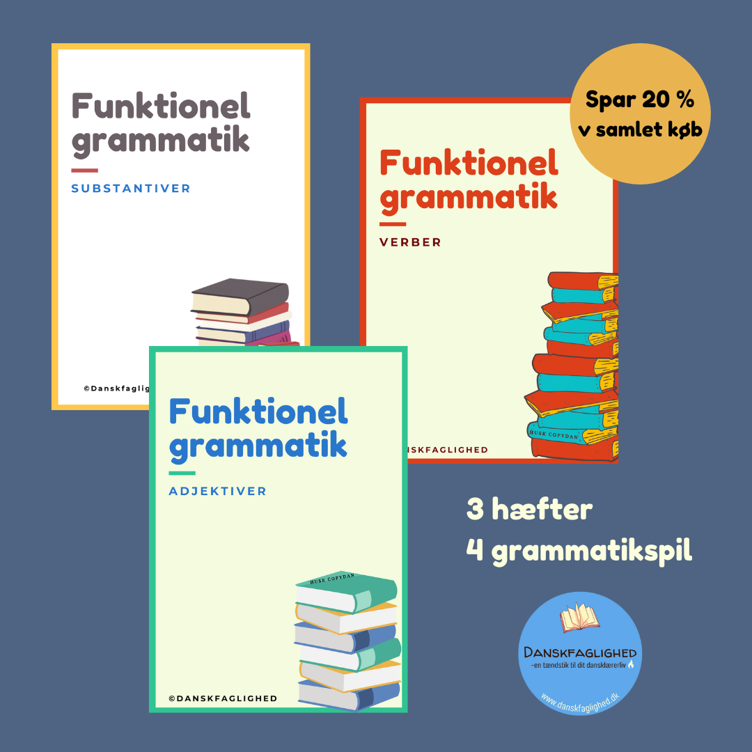 De tre populære grammatikhæfter i en samlet pakke inkl 4 grammatikspil.