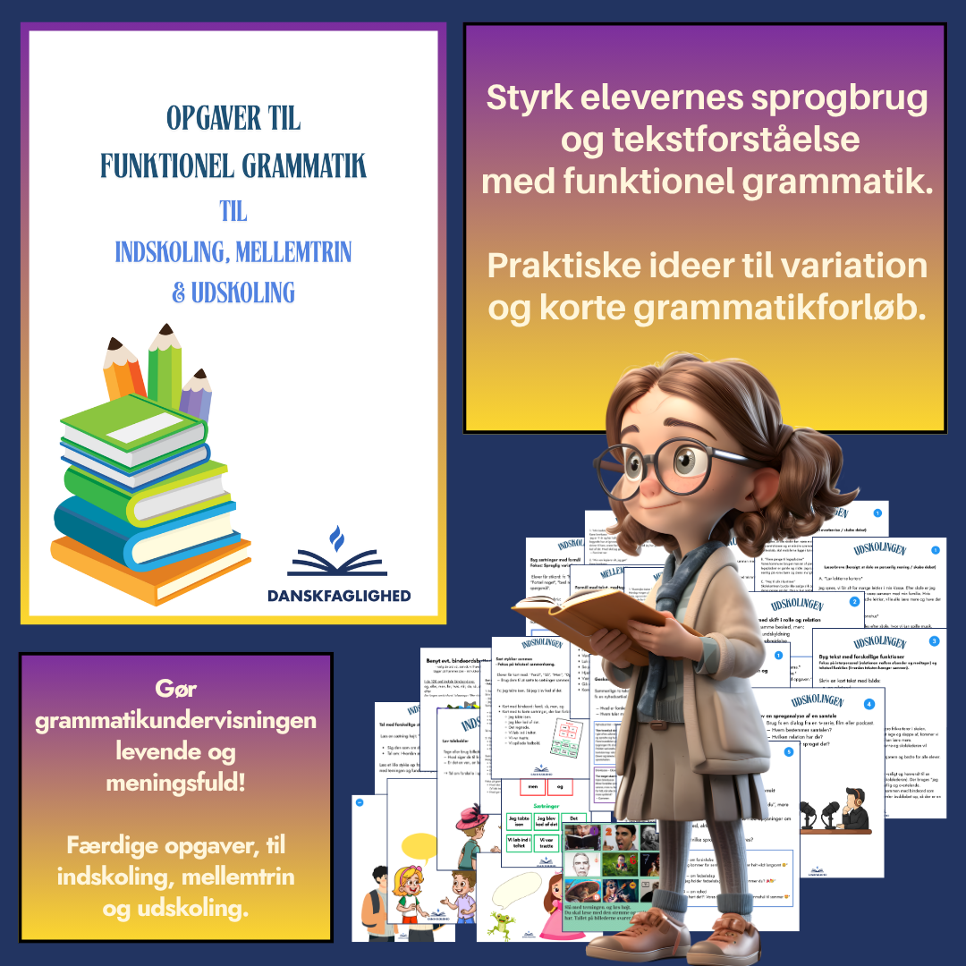 Vil du styrke dine elevers forståelse af funktionel grammatik på en sjov og meningsfuld måde? Dette hæfte giver dig alt, hvad du skal bruge til at arbejde med sprogbrug, sproglige funktioner og grammatikopgaver i dansk – klar til brug uden ekstra forberedelse.