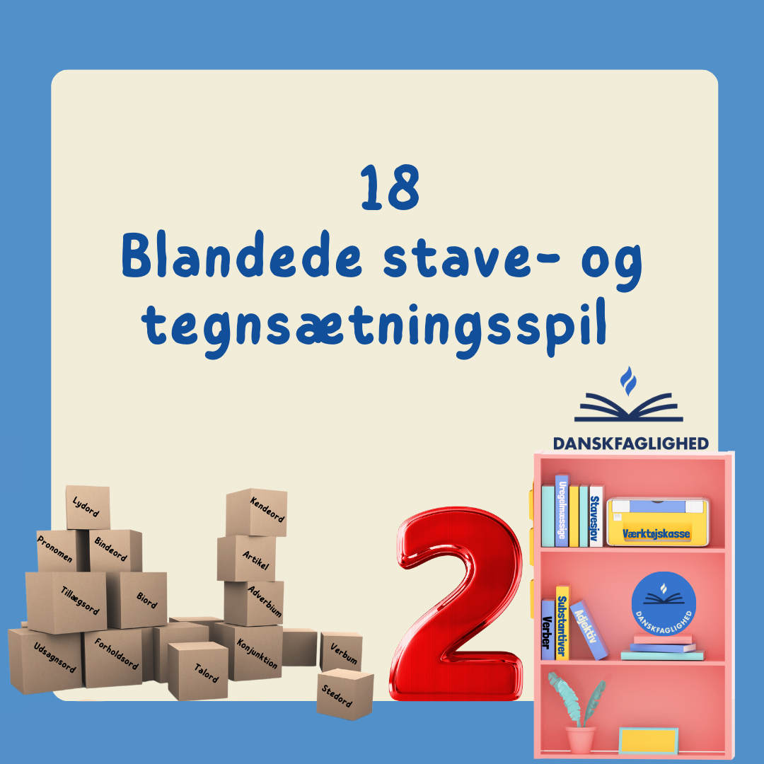 Grammatikpakke 2 – 18 blandede stave- og tegnsætningsspil