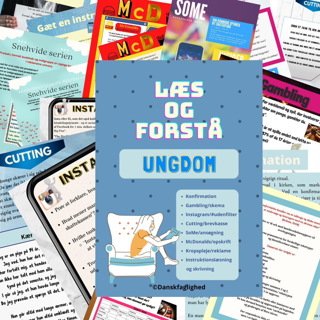 Her er 16 ark med læseforståelsesopgaver til overbygningen – ca. 12-15 år.