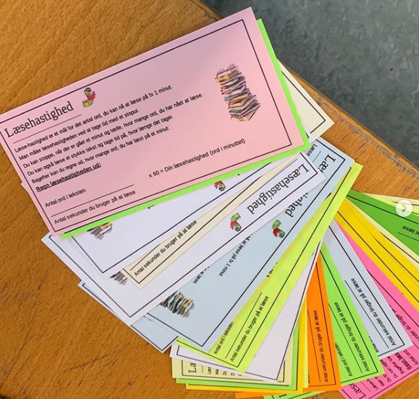 Jeg fortæller om læsehastighed og udleverer et hastighedskort. Du kan læse om mit forløb under læsehastighed – kortene kan du downloade her.