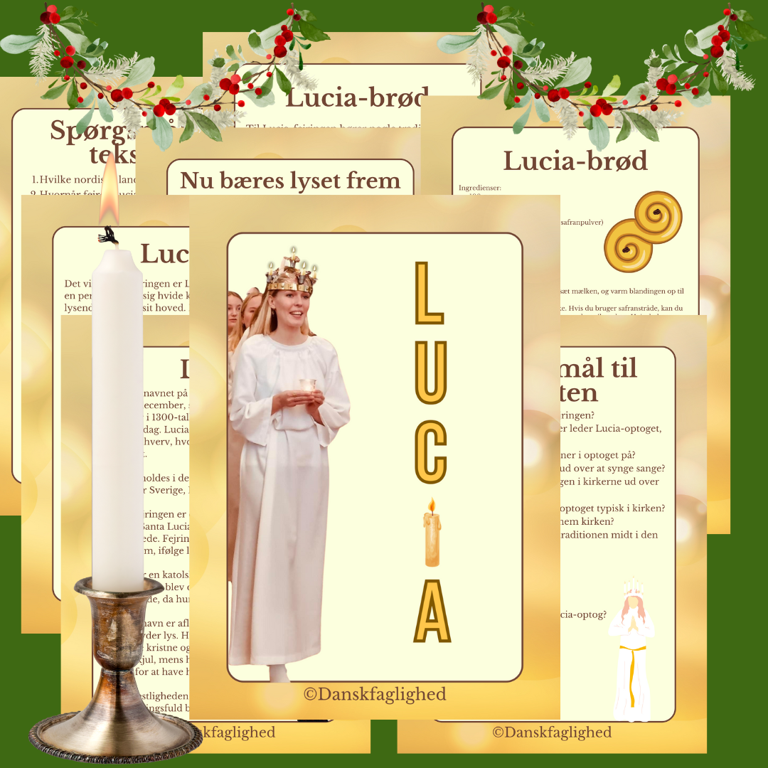 Eleverne møder en informativ tekst om Lucia-traditionen, hvor de lærer om Lucia fra Syrakus, om hvorfor vi fejrer Lucia i dag, og hvordan lysoptog, hvidt tøj og Luciasangen hænger sammen.