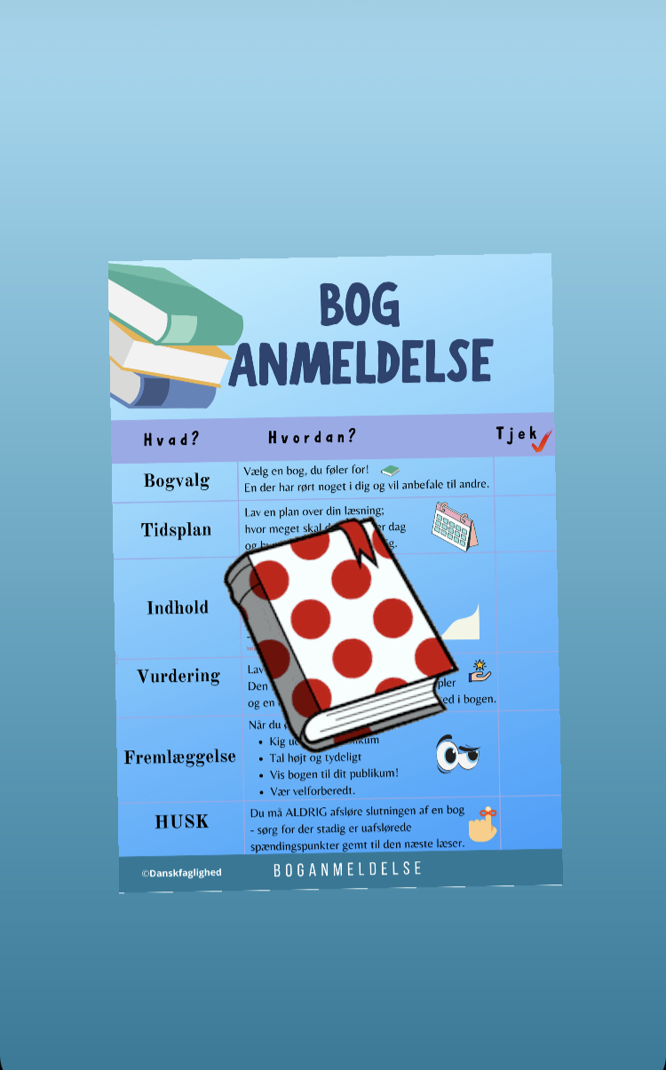 En tjekliste til forberedelse af den mundtlige boganmeldelse, lavet med stor inspiration fra et ark set hos en australsk underviser.