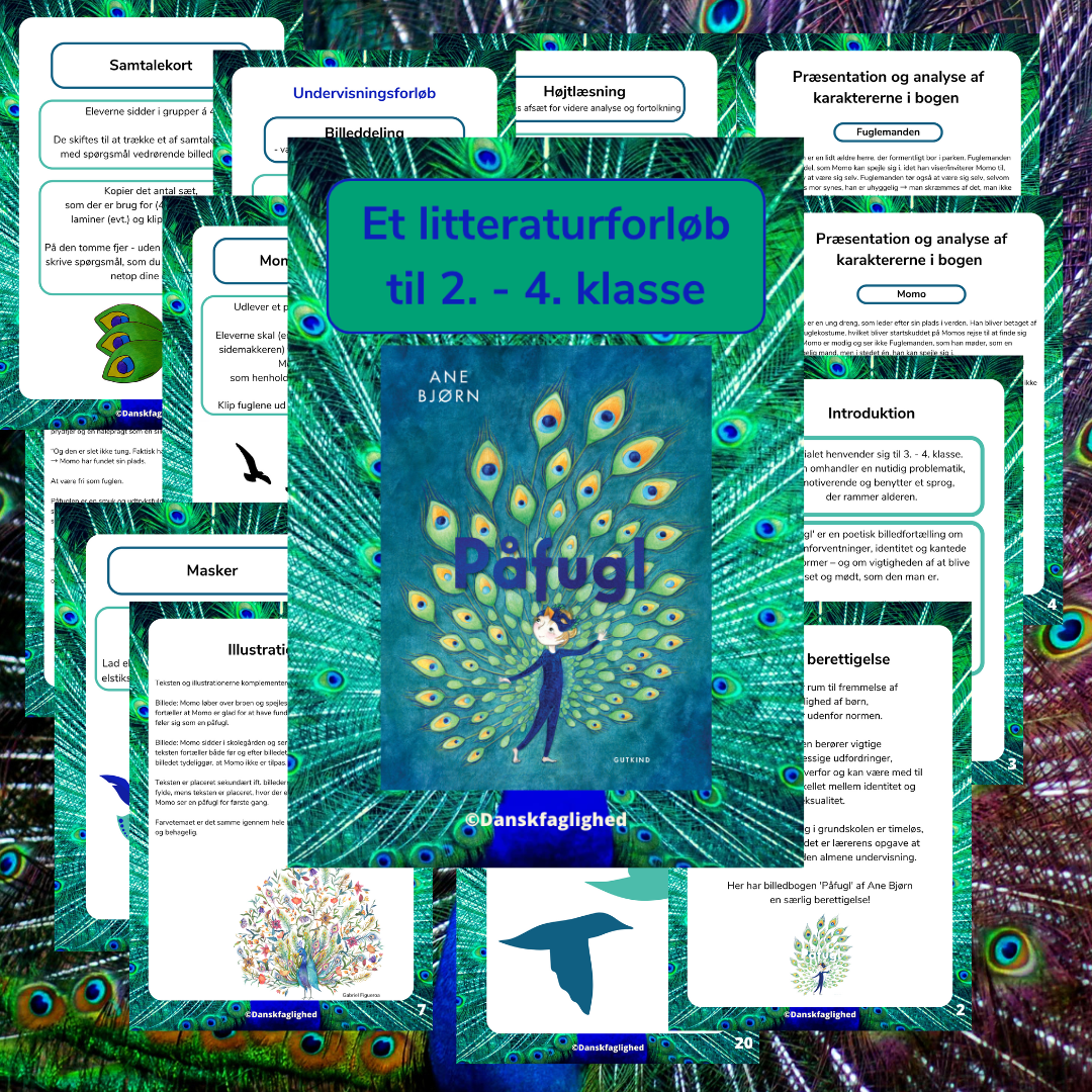 Et litteraturforløb målrettet 2. – 4. klasse med udgangspunkt i bogen “Påfugl” af Ane Bjørn.