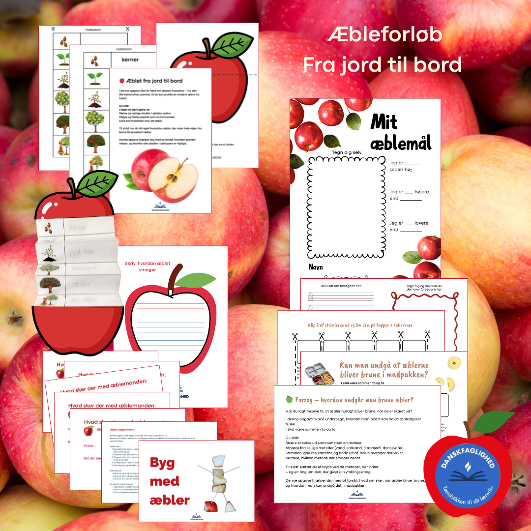 Dette æbleforløb er skræddersyet til indskolingen og kombinerer natur/teknologi, dansk og kreativitet i én lækker pakke.