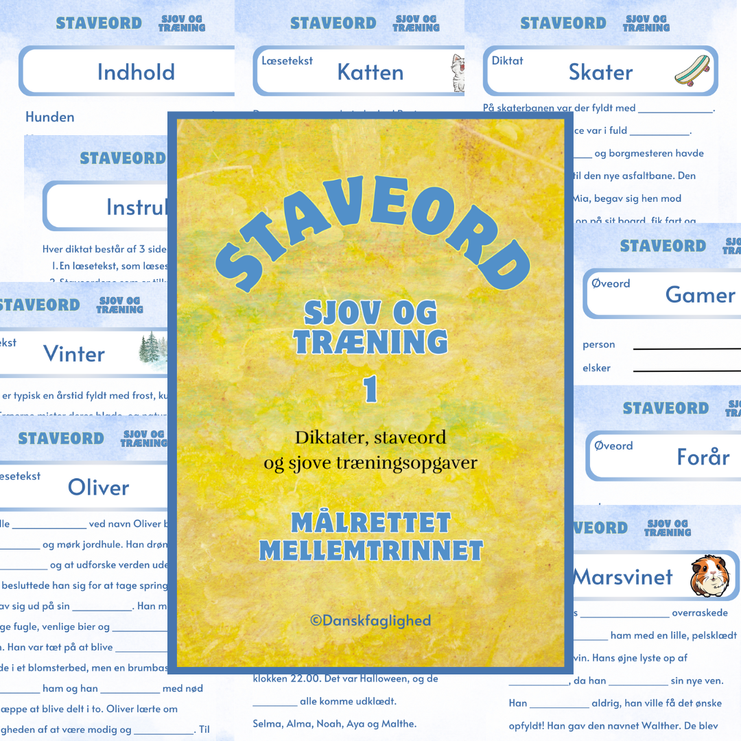 - Selve diktaten, hvor staveordene skrives ind på de tomme streger, efter diktering af læreren.