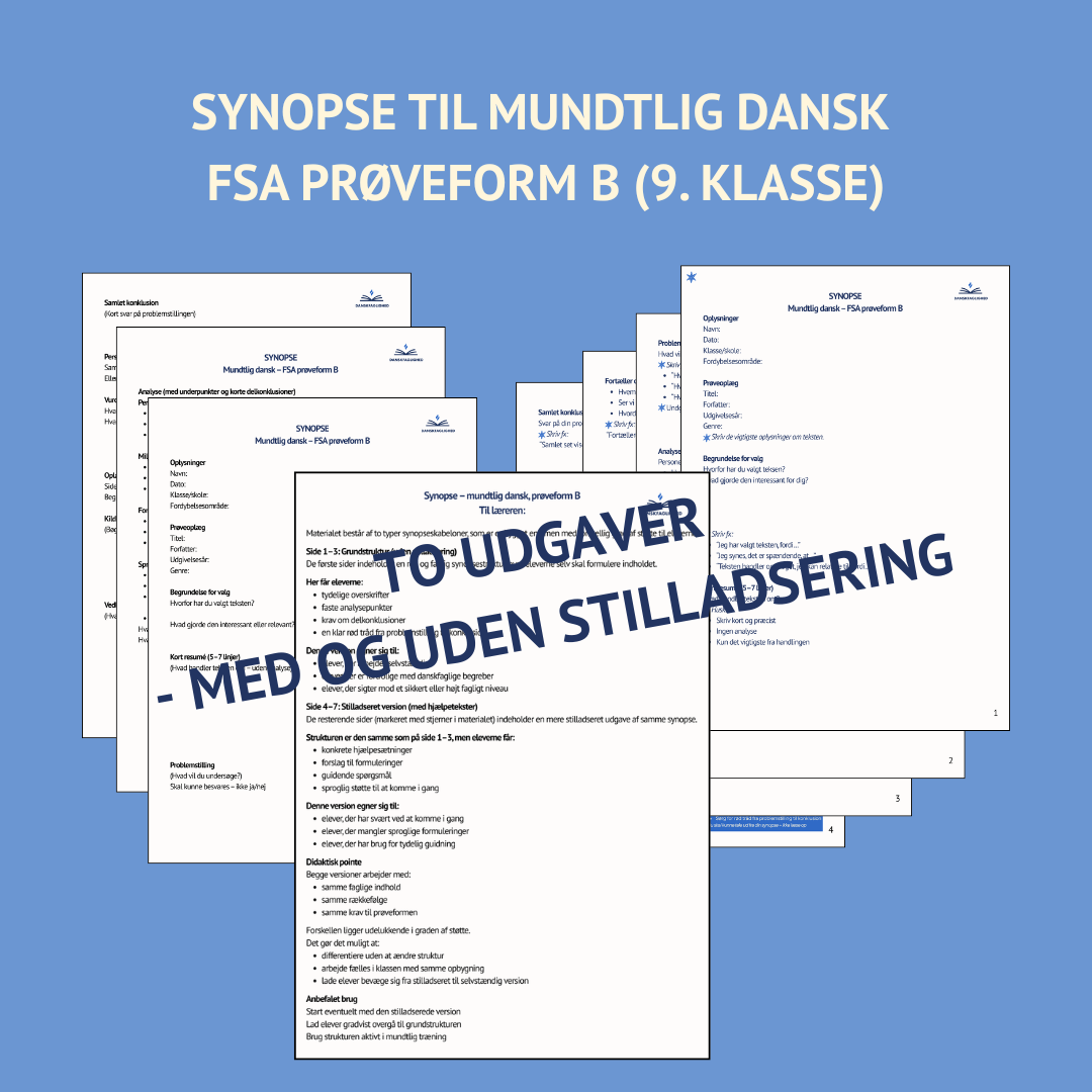 Leder du efter en synopse til mundtlig dansk, der faktisk hjælper dine elever til at præstere bedre til prøveform B?