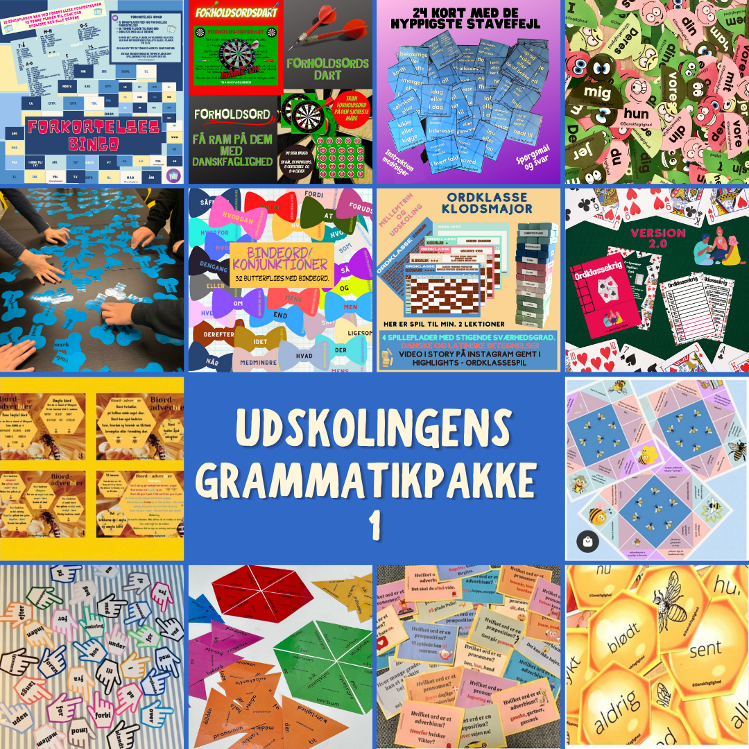 Udskolingens grammatikpakke 1 er en omfattende og praksisnær samling af motiverende grammatikmaterialer målrettet udskolingen.